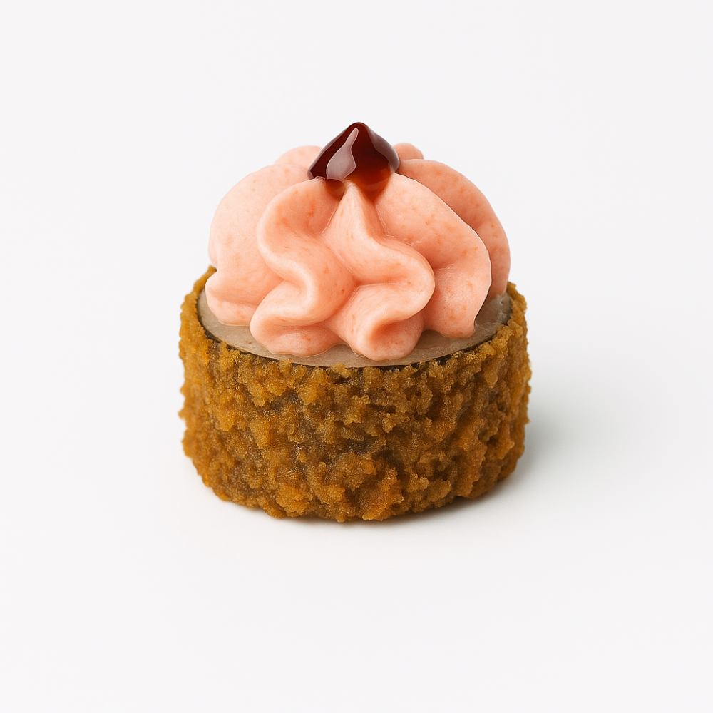 Рис SHINAKI, нори, лосось, огурцы, кляр, панировочные сухари, шапочка лава, унаги соус